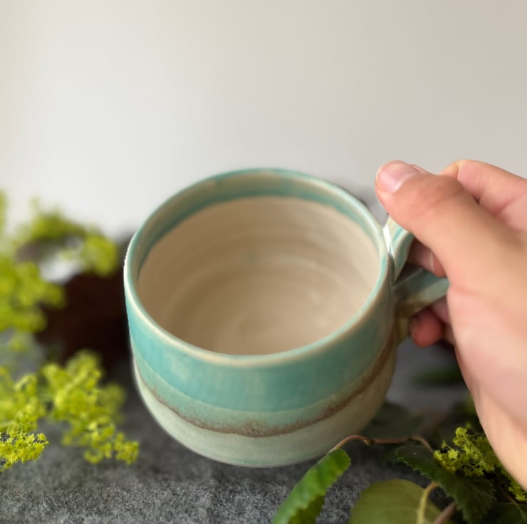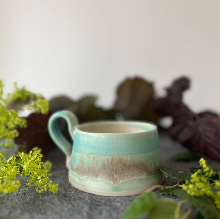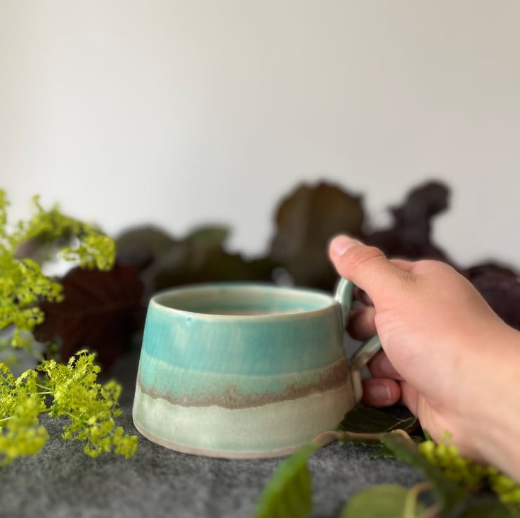 A handmade pottery cup perfect for your first cup of tea of the day.