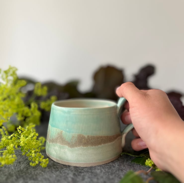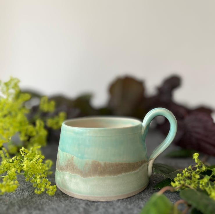 A handmade pottery cup perfect for your first cup of tea of the day.