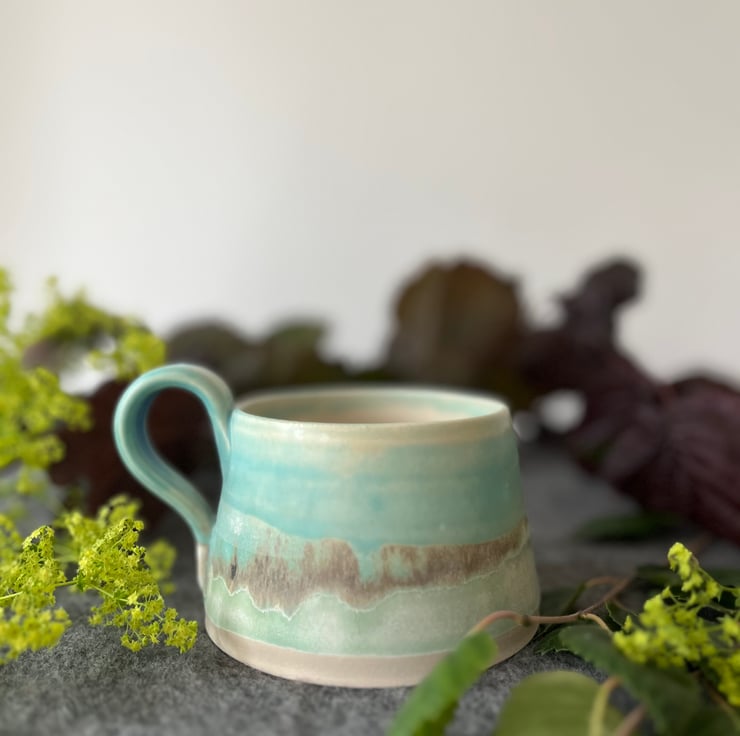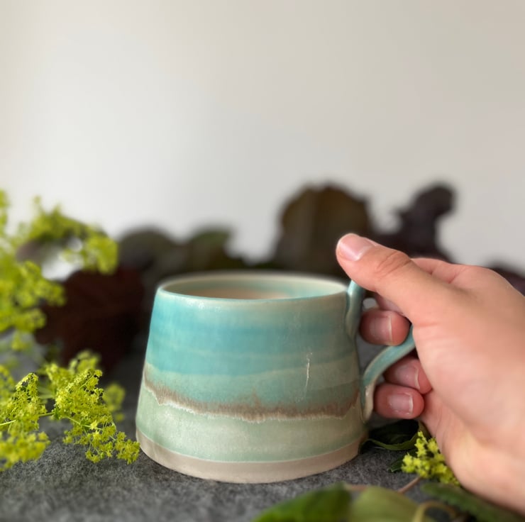 A handmade pottery cup perfect for your first cup of tea of the day.