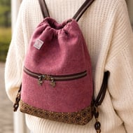 This is a large shoulder or crossbody bag handcrafted in the most beautiful cerise pink Harris Tweed