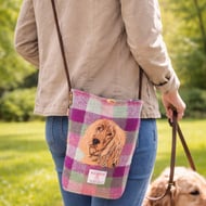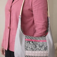 The Clover Sac - Cerise Pink Harris Tweed Embroidered Shoulder or Crossbody Bag