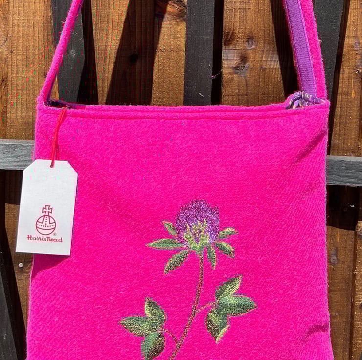 The Clover Sac - Cerise Pink Harris Tweed Embroidered Shoulder or Crossbody Bag