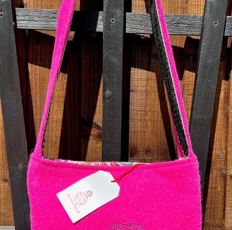 The Poppy Bag - Cerise Pink Harris Tweed Embroidered Shoulder or Crossbody Sac