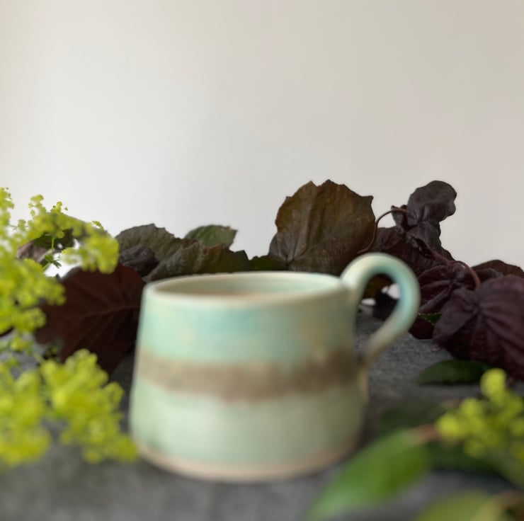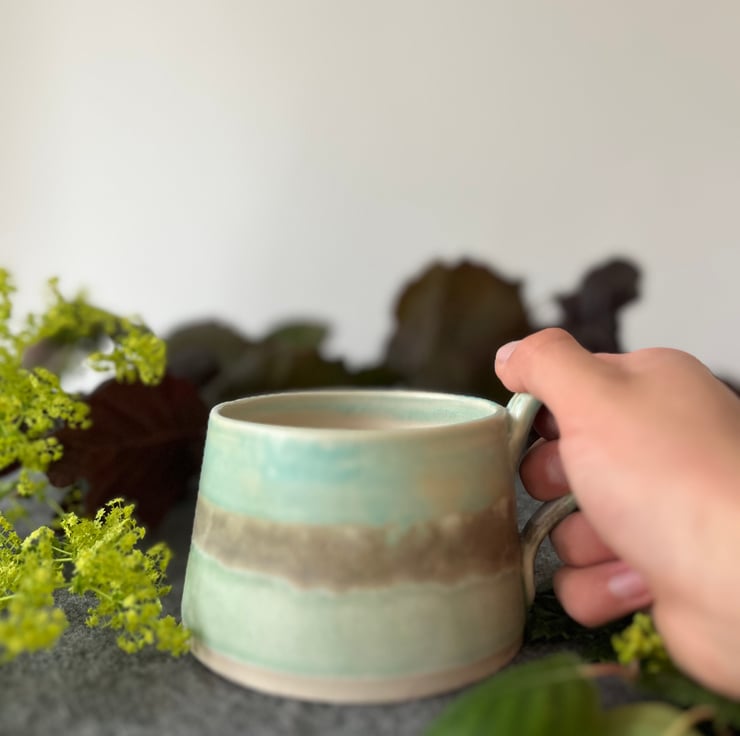 A handmade pottery cup perfect for your first cup of tea of the day.