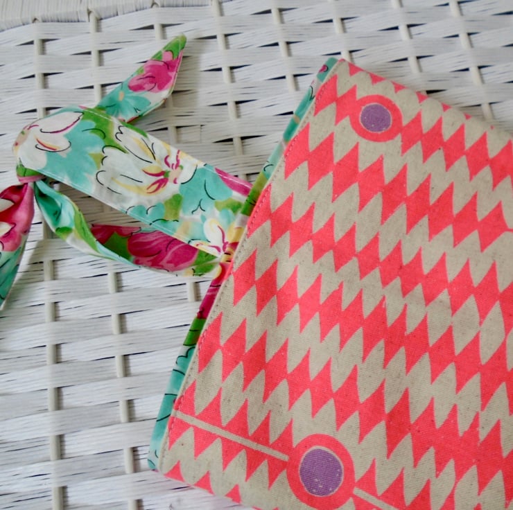 Made in a printed cotton linen fabric , and a floral cotton fabric