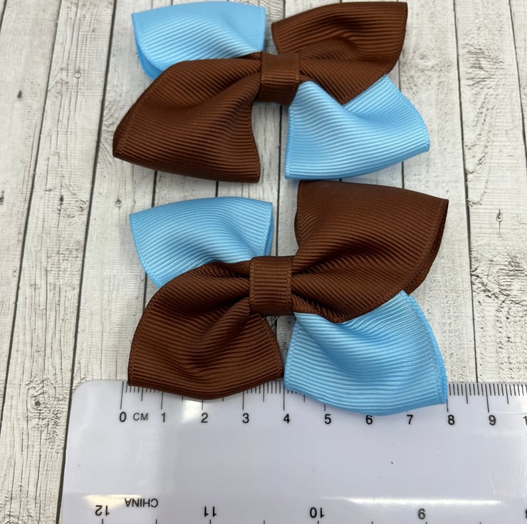Brown and Light Blue Square Double with Bows on Clips (pair)