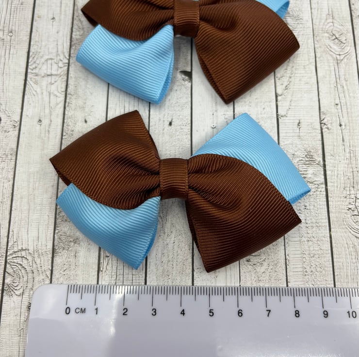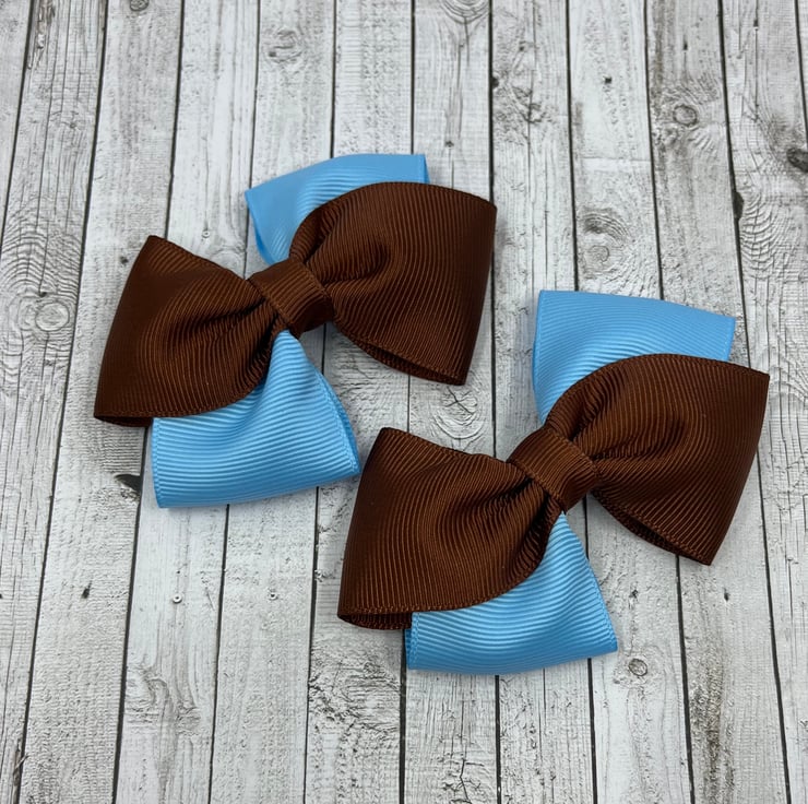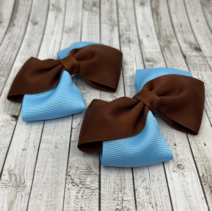 Brown and Light Blue Diagonal Double with Bows on Clips (pair)