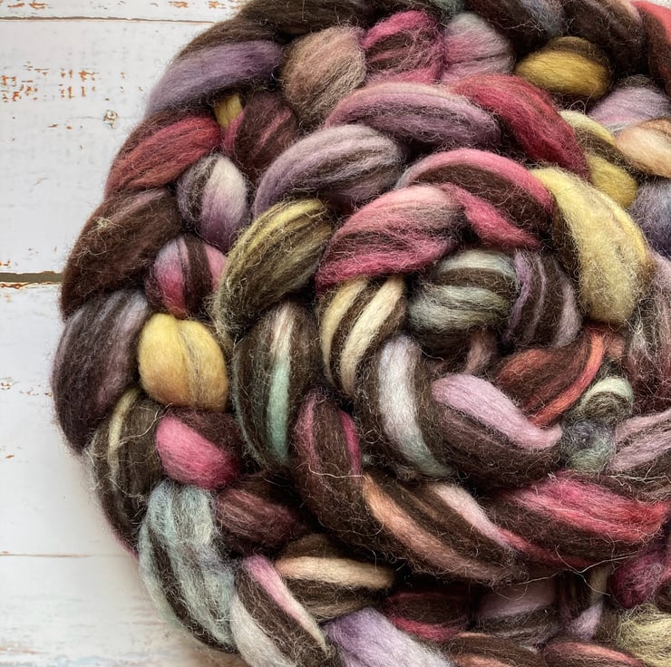 Corriedale wool is a medium natural coloured wool and the mix of brown and white in the humbug really makes colours pop.