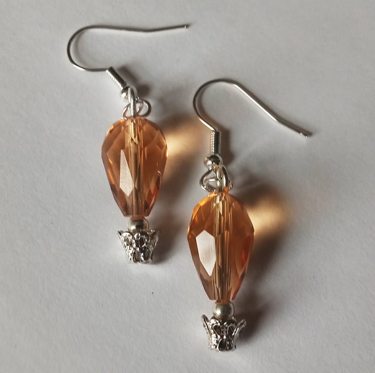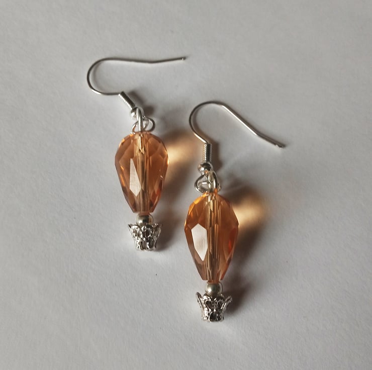 These earrings have hot air balloons with amber coloured crystal bodies and silver plate detail. They are finished nicely with silver plate hooks.