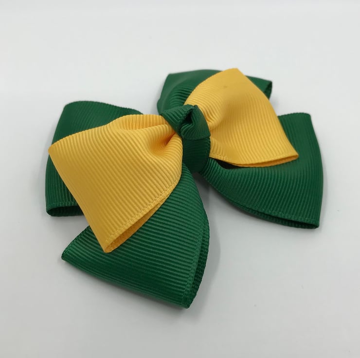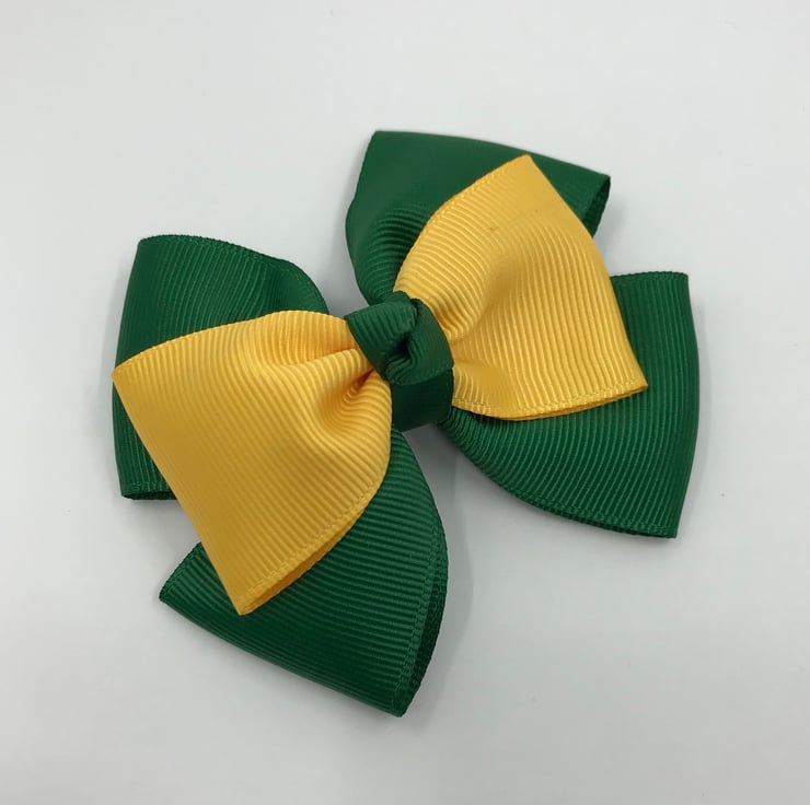 Our top knot bows are handmade here in our little shop. They are made from the best quality Grosgrain ribbon. These bows are really elegant and look extremely smart and go well with the forest green and yellow gold School Uniform.