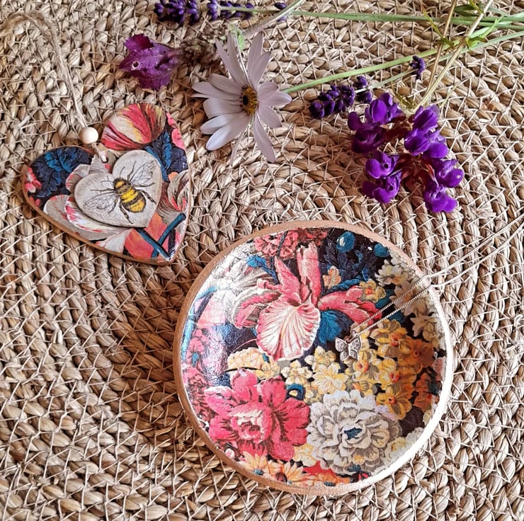 Both decoupaged using a pretty Rich Floral Design, Bee & edged in Gold.