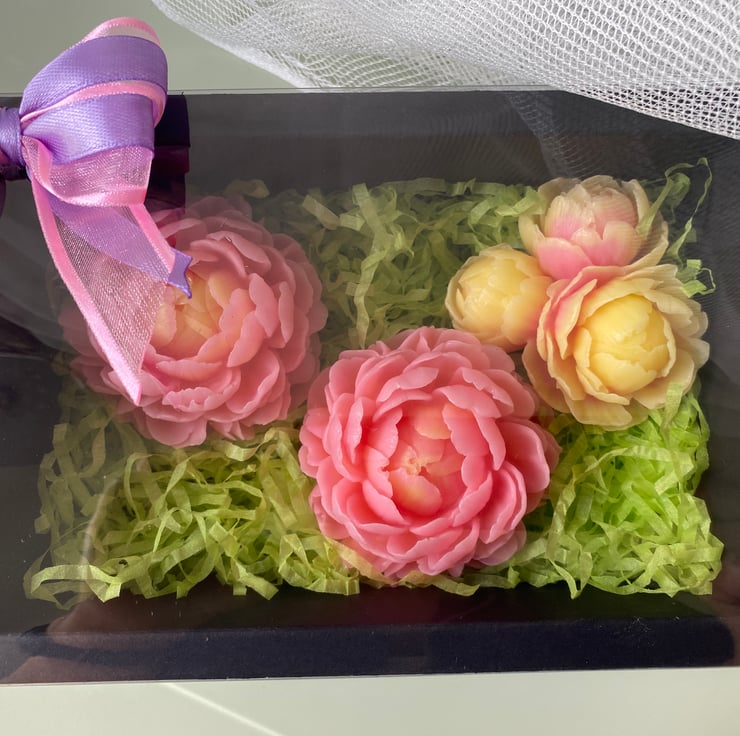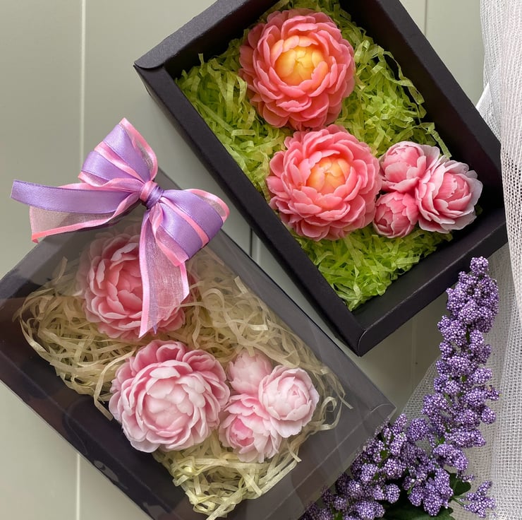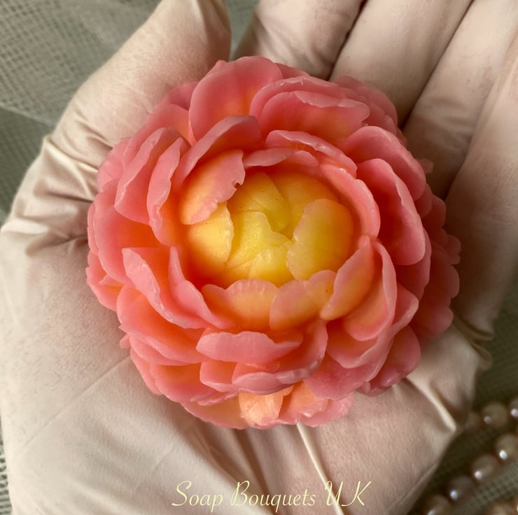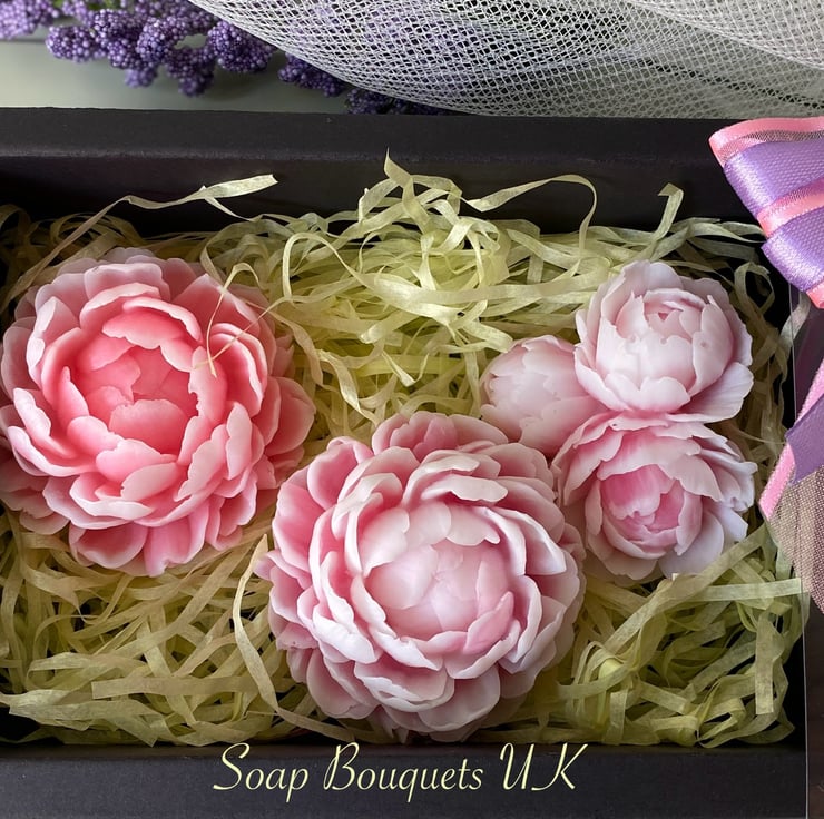 Discover our beautiful handmade vegan soap gift set, designed to look like blooming peonies. Crafted in elegant pink tones, with the option to customize colours upon request, these soap flowers offer a delightful floral fragrance. This luxurious and unique gift is perfect for any occasion.
