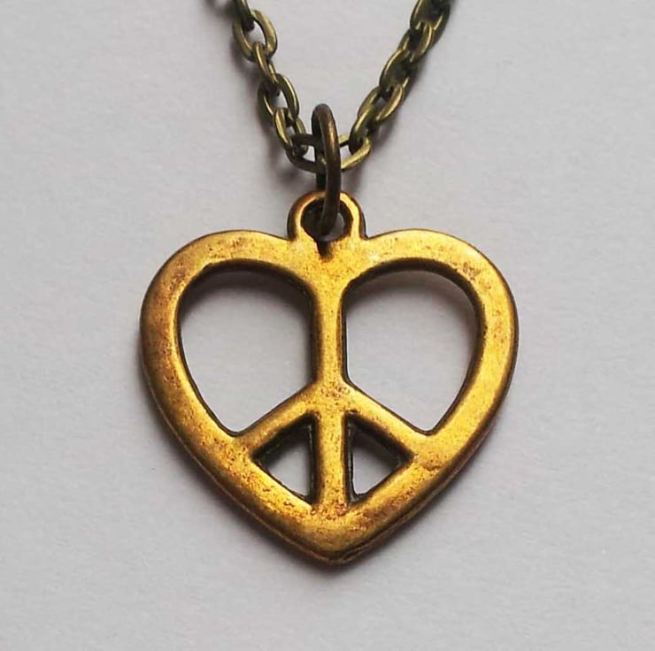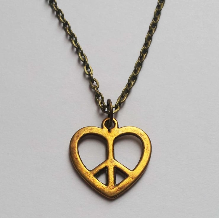This great necklace has a nice peace sign heart hanging on bronze 18" chain.