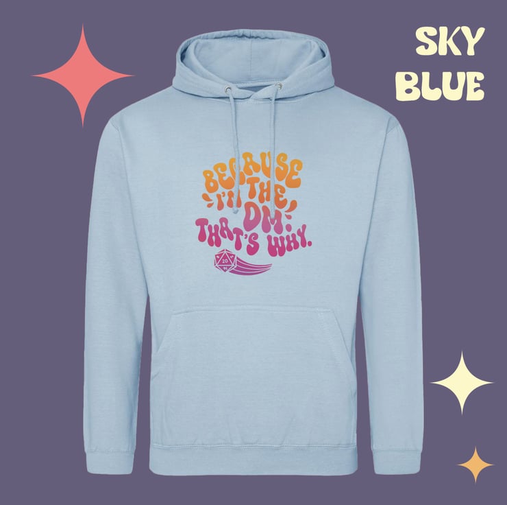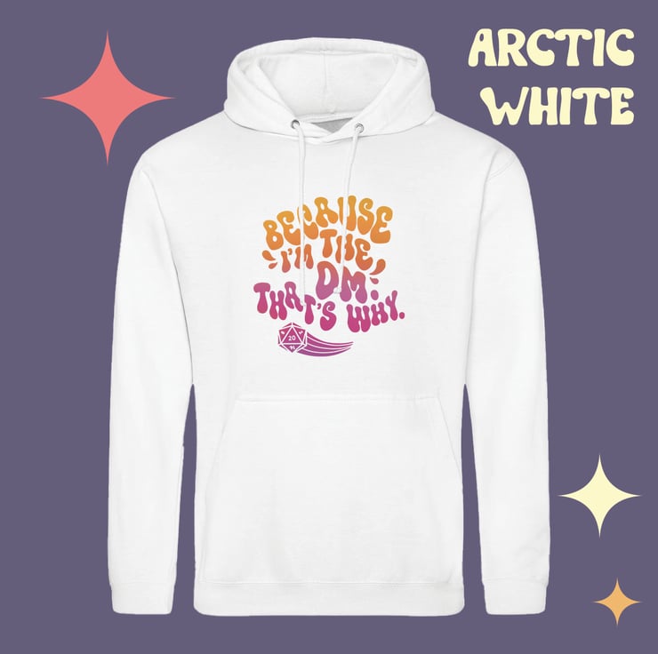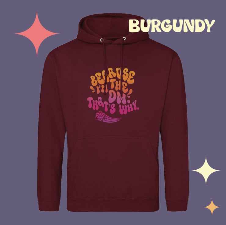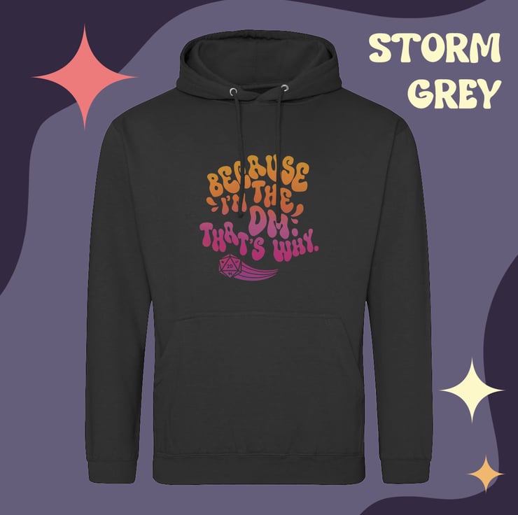 Picture this: you're a DM, you've just elaborately explained a terrifying creature to your players who absolutely stands a chance at TPKing the party. You're met with a chorus of "whyyy?" - instead of having to answer them, buy this hoodie, and WEAR the answer at all times! I've got you.