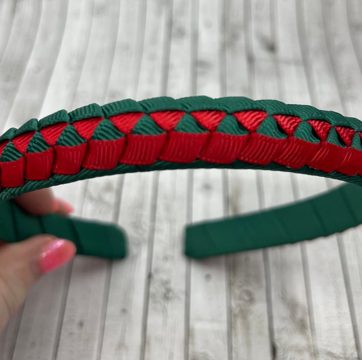 Our pleated hairbands are handmade here in our little shop. They are so cute the could compliment any school Uniform with hunter green and red to keep those sneaky little curls from straying into your little one's eyes.