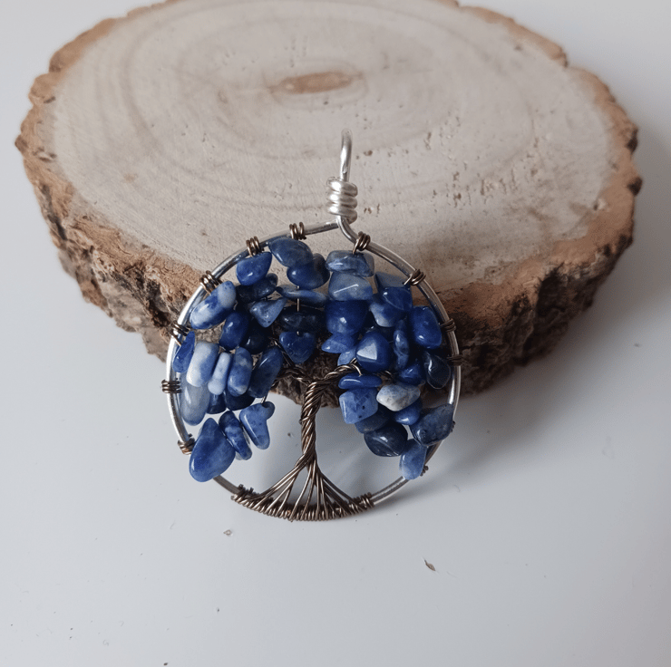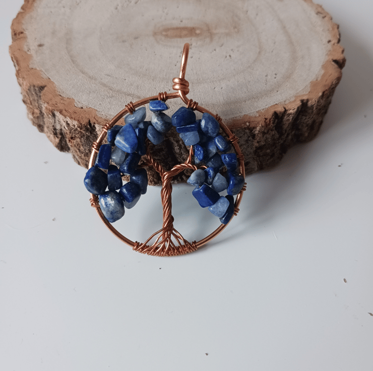 This handcrafted Wire Work Tree of Life necklace is made with meticulous detail, featuring copper wire and sodalite. With a pendant size of approximately 1.5 inches and a 20-inch chain, this piece is a perfect addition to any jewellery collection. Ready for immediate shipping.