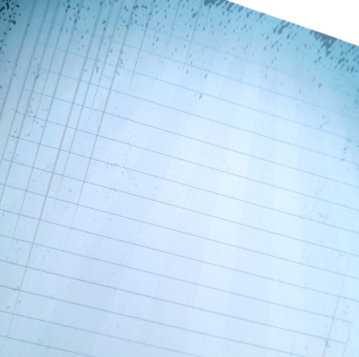 The paper has feint 7mm rules / lines, printed up to the edge in full colour on one side onto 100gsm white paper.