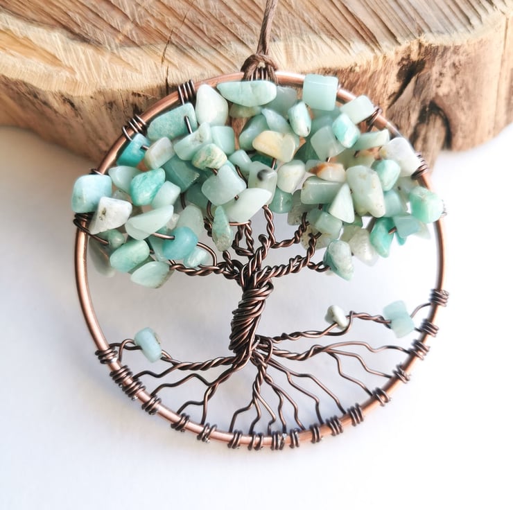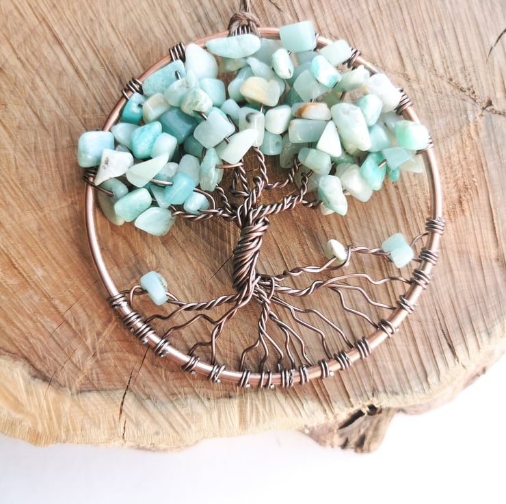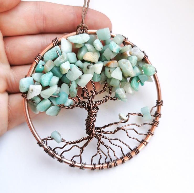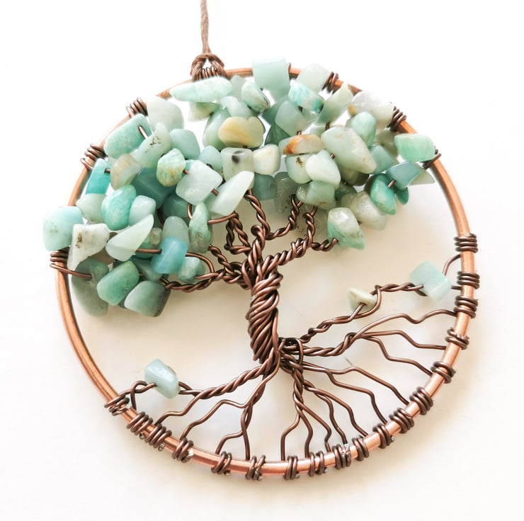 Hang this beautiful Amazonite gemstone suncatcher in your home or car to promote soothing energies.