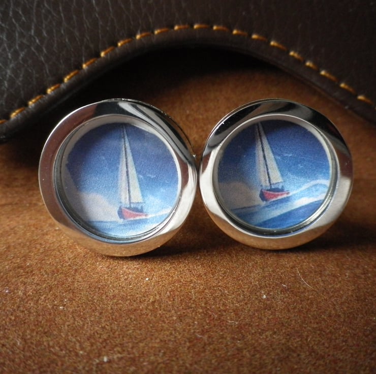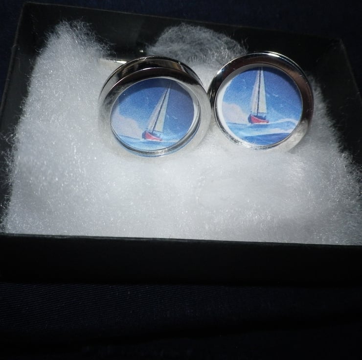 This listing is part of a programme of cufflinks made in my design studio in southern England..... images include graphic art, movies & music, animals & birds, sport,& romance, plus a wide variety of other themes, all chosen for their vibrancy and visual impact......The cufflinks are crafted from rhodium plated alloy, are highly polished with a deep setting and shaped shank for ease of use, and protected with a 15mm perspex disc.