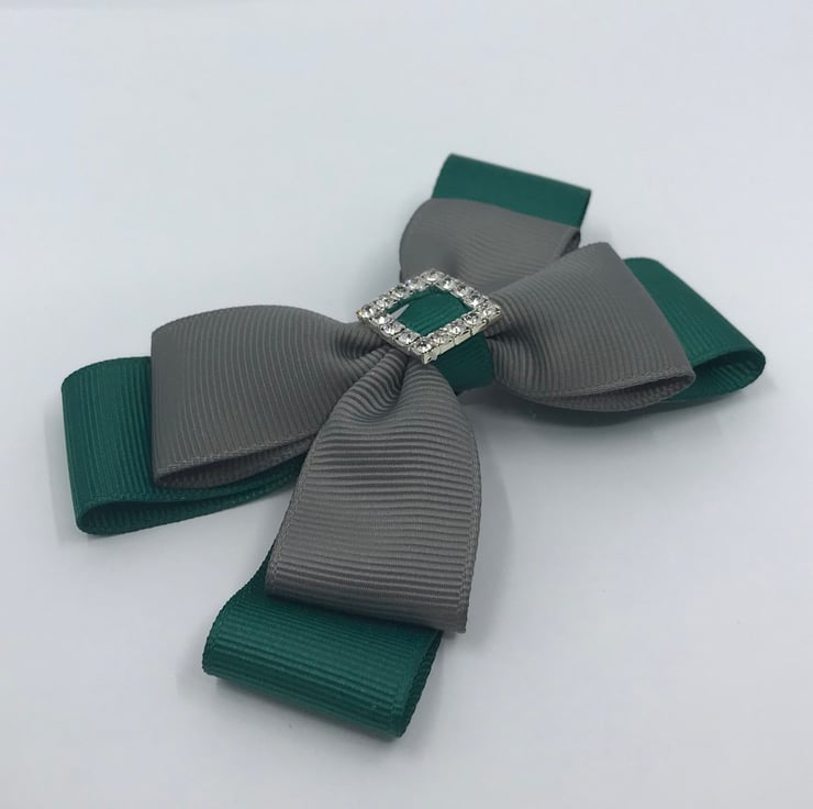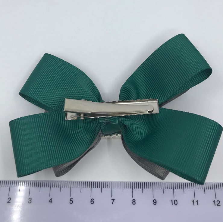 Our double bows are handmade here in our little shop. They are made from the best quality Grosgrain ribbon. These bows are really elegant and look extremely smart and go well with the hunter green and grey School Uniform.