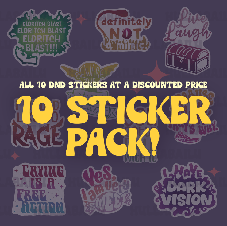 Get ALL 10 stickers at a £5 discount! Bargain! (Sticker pictures attached are examples of the product - the pack will include one of every design!)