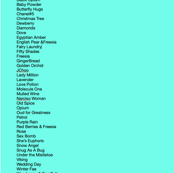 List of available fragrances in the photo section..... if we dont have it in stock we can get it :-)