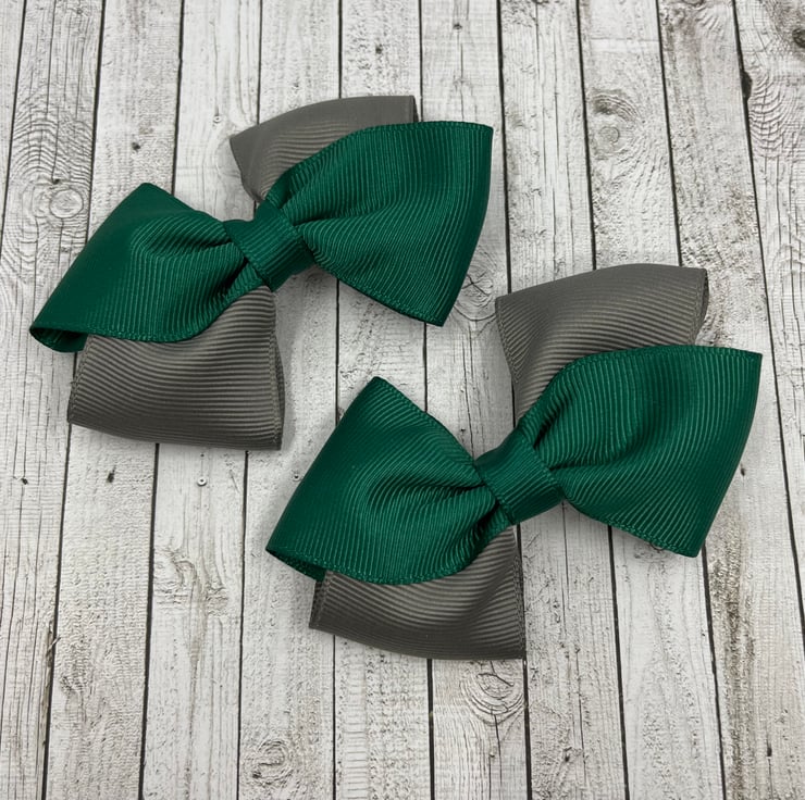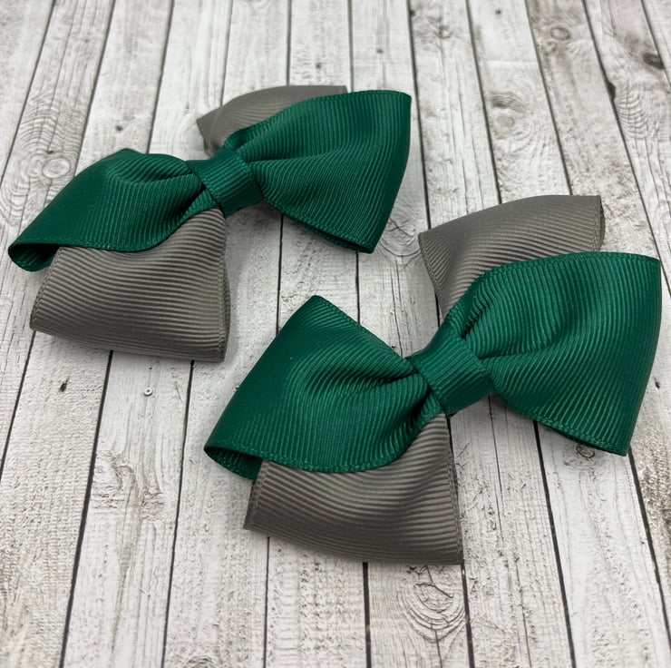 School Hunter Green and Grey Diagonal Double with Bows on Clips (pair)