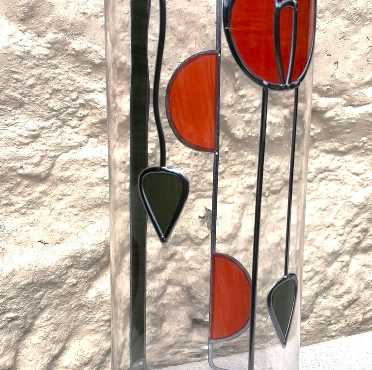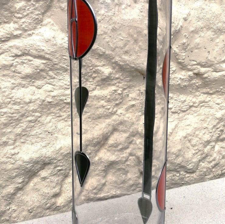 Orange Moon is a flamboyant stained glass effect flower vase Hand Leaded Design