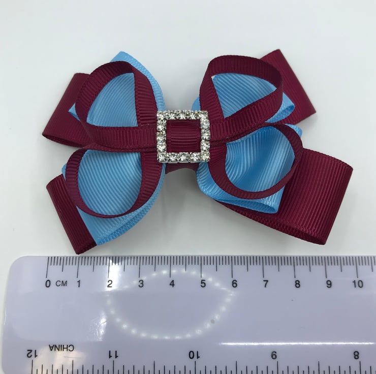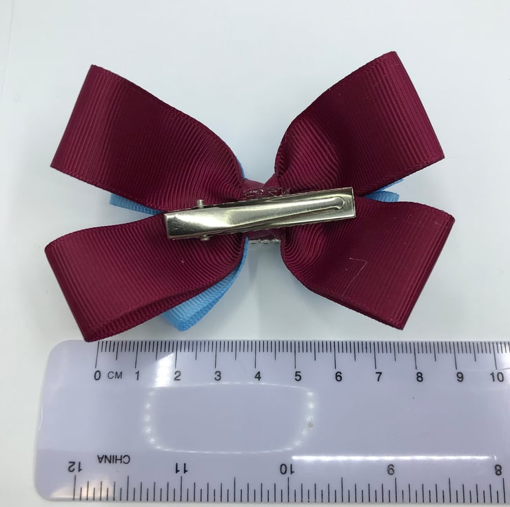 School Wine and Light Blue Layer Bow with Wine Loops on Clip
