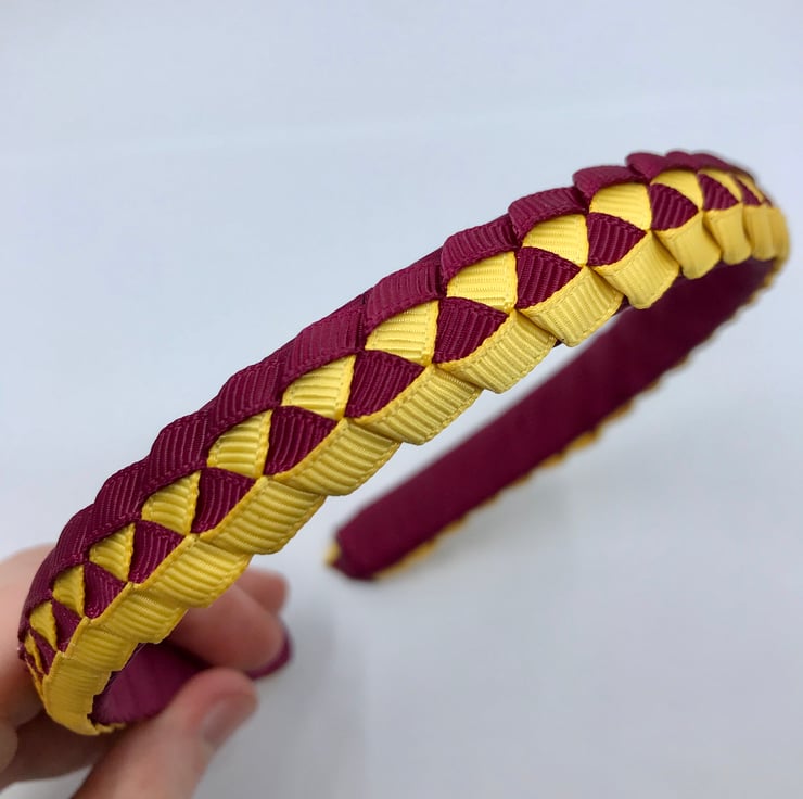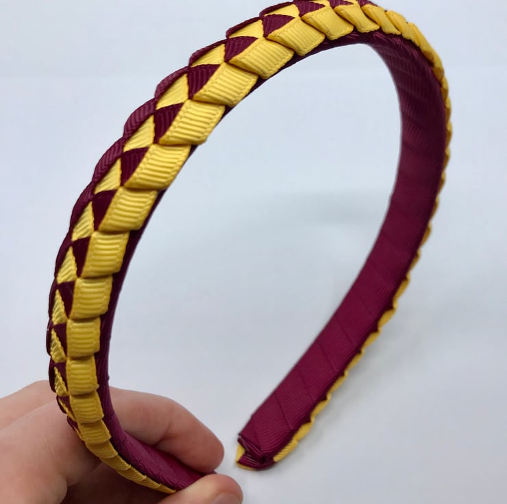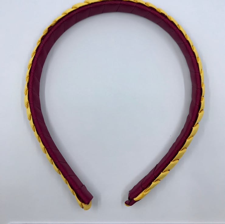 Our pleated hairbands are handmade here in our little shop. They are so cute the could compliment any school Uniform with wine and yellow gold to keep those sneaky little curls from straying into your little one's eyes.