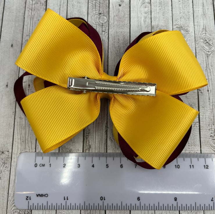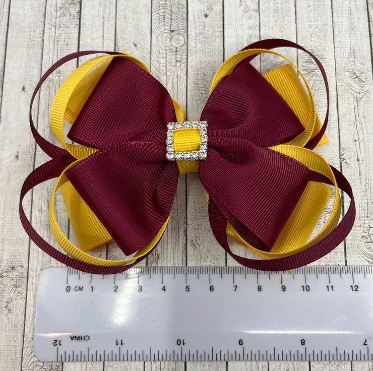 Our large loopy bows are handmade here in our little shop. They are made from the best quality Grosgrain ribbon. These bows are really elegant and look extremely smart and go well with the wine and yellow gold School Uniform.