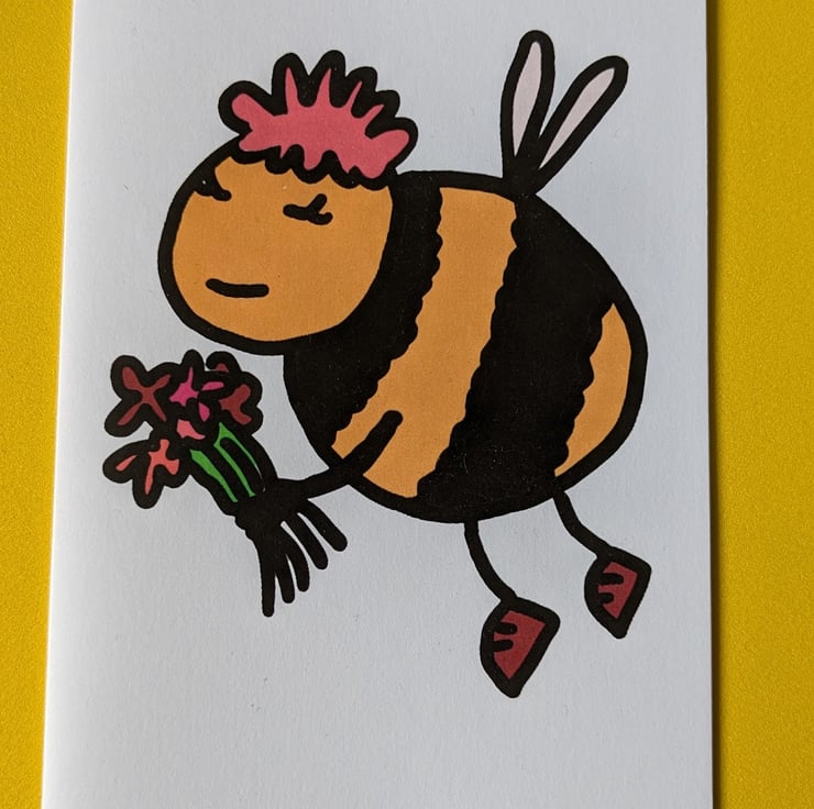 Super cute bee design featuring a flying bee holding a bunch of flowers. This is one of my popular sellers when I do craft fairs, so grab one quick!