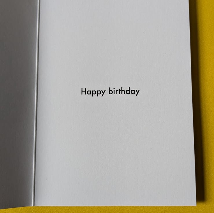 Inside the card it says "Happy birthday".