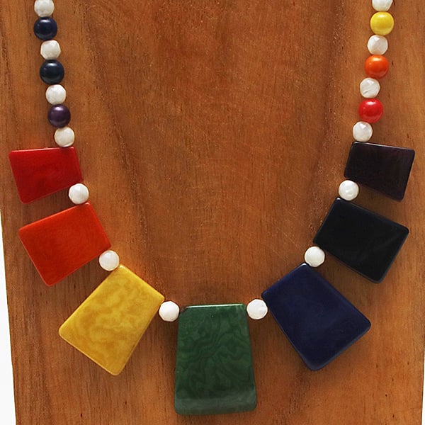 Using my favourite bead material the Tagua Seed, also known as "Vegetable Ivory". The seeds are matured for 3 years before any work is carried out, producing a strong and light material. Also, I think the beads are tumble polished in sand, creating the marbled sheen especially on the flat beads. For full information have a look at the last image.