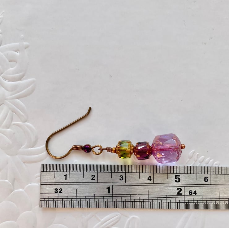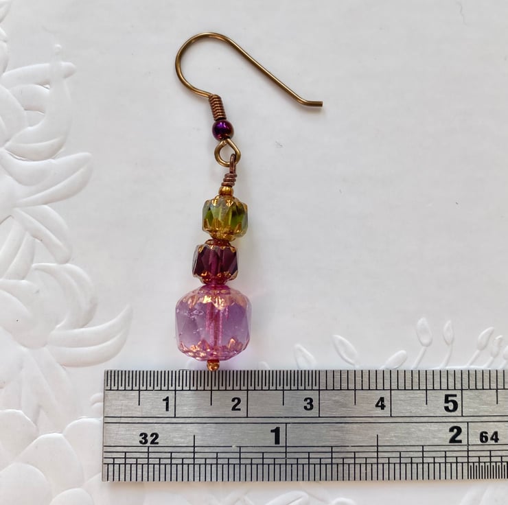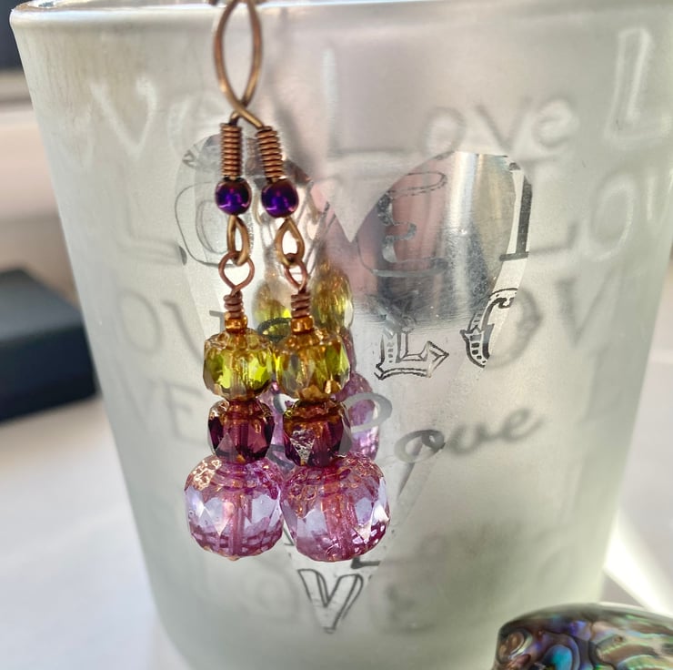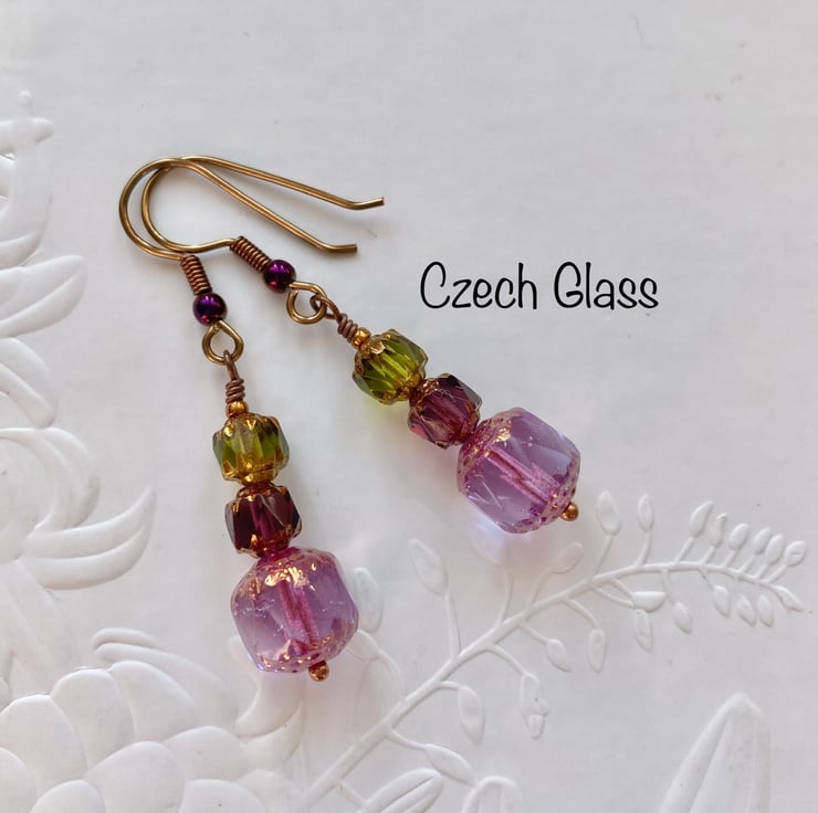 I love working with antique bronze wire to make my own ear wires and findings. The Czech beads are such lovely colours that I just wanted to combine them with the antique bronze wire to make earrings with.