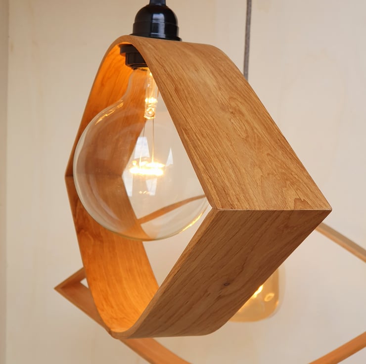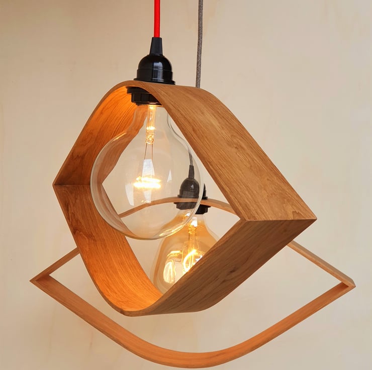 Handmade steam bent pendant light in Oak. Each piece is unique, the character of the timber and the bending process all add to this uniqueness. Each lamp is supplied with a 1mtr cord with the light fitting being an E27 standard screw type. There is a choice of cord colour, these are: Black, White, Antique Brown. The cord can be cut to the desired length but needs to be hard wired ideally to an existing ceiling rose. The fitting is double insulated meaning there are just two wires, the live and neutral, and should be fitted by a competent person, alternatively seek the help of a qualified electrician.