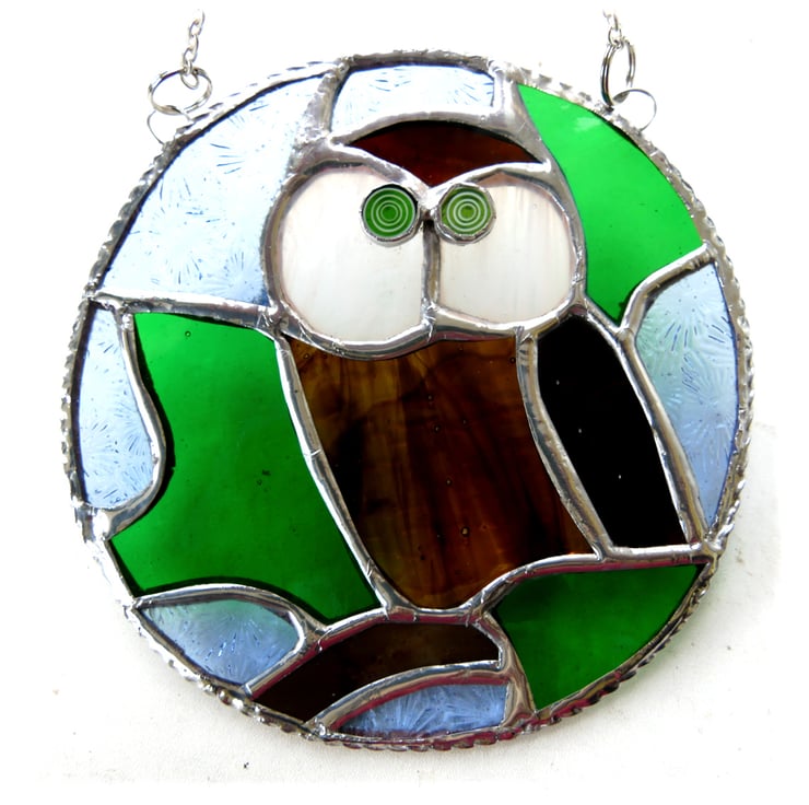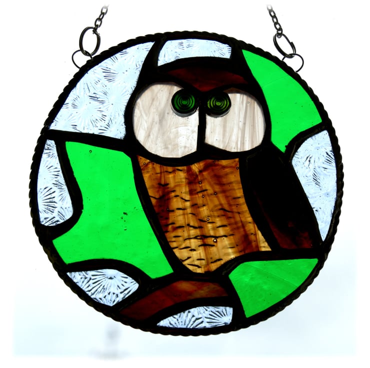 The suncatcher hangs from a chain which is securely attached to the top of the Owl Ring. The ring is framed with twisted wire for neatness and to give it strength and is 13cm in diameter.