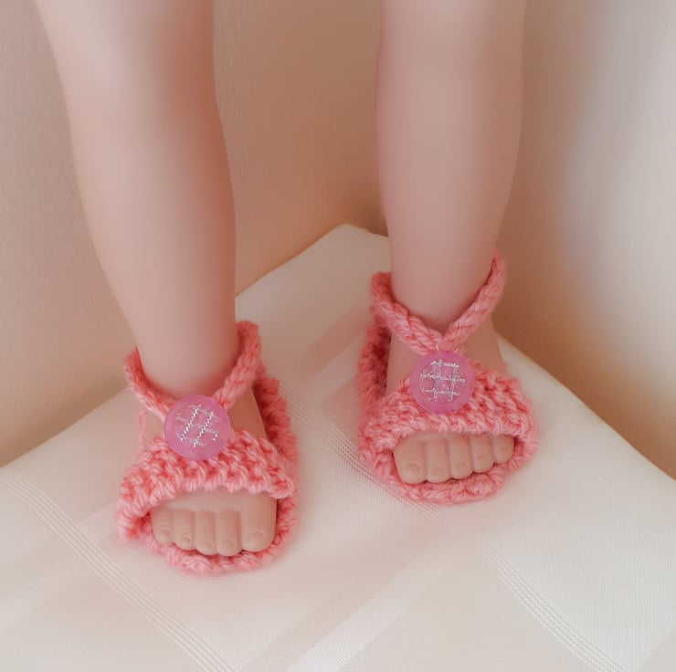 This hand knit PATTERN is for a pair of sandals for a Doll. To fit doll Height 46 cm or 18 inches. The sandals are knitted in double knitting yarn using 3.25 mm knitting needles and is knit flat and seamed.