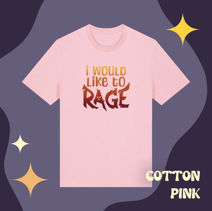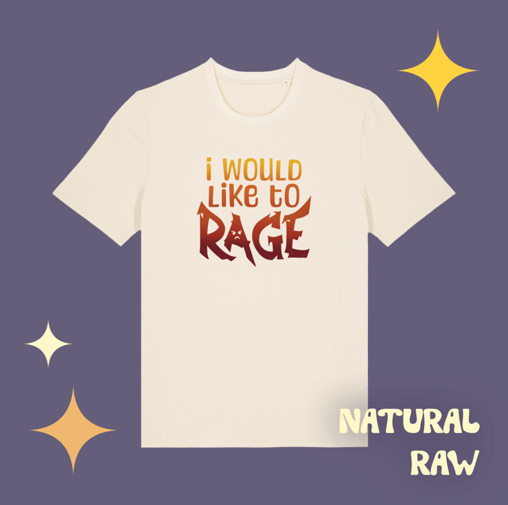 Do you play a barbarian? Do you not play a barbarian but things just make you mad? You don't need permission - go ahead and rage, and wear it on a t-shirt while you do so.