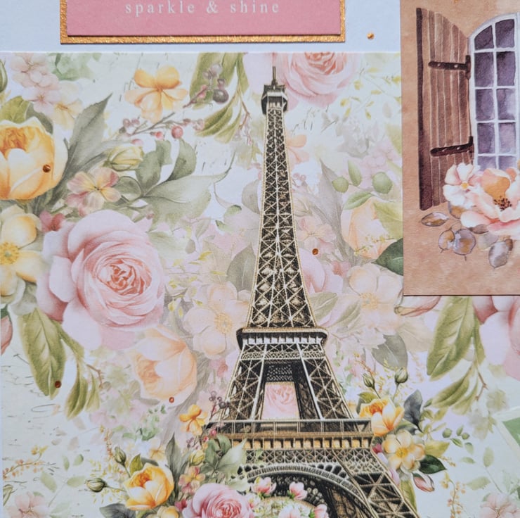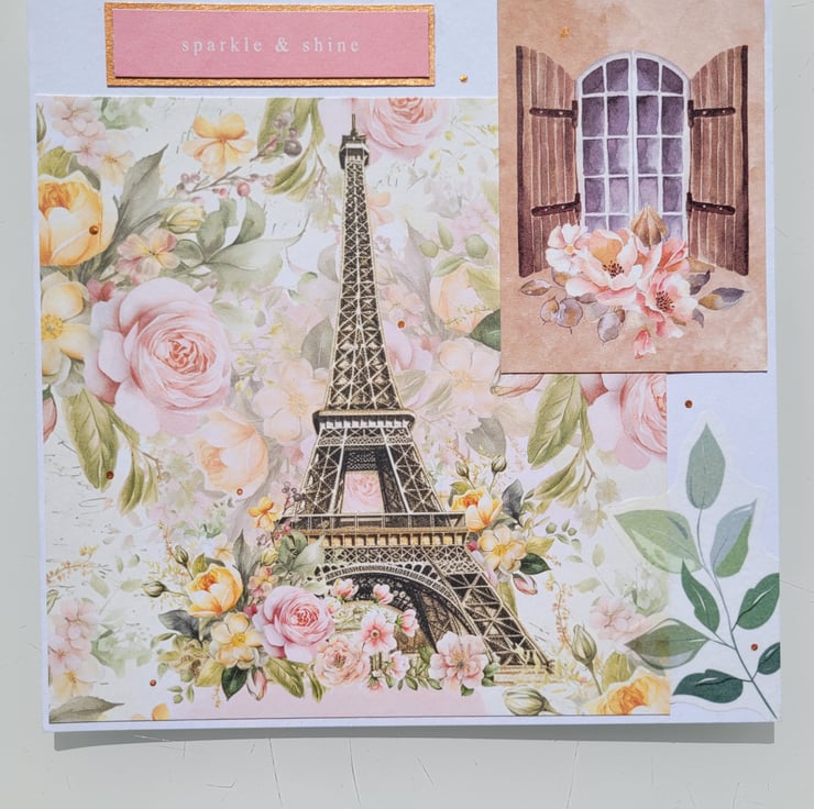 Postage included in price. Handmade decoupage blank card suitable for many and any occasion with a sentiment that reads 'Sparkle & Shine'.