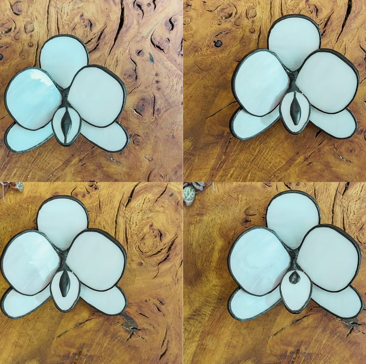 Digital pattern download for a stained glass flower (orchid), for the copper foil (Tiffany) method. You will receive a 6-page PDF document with materials/tools list, step-by-step instructions, tips, photos and the numbered hand-drawn cutting pattern.