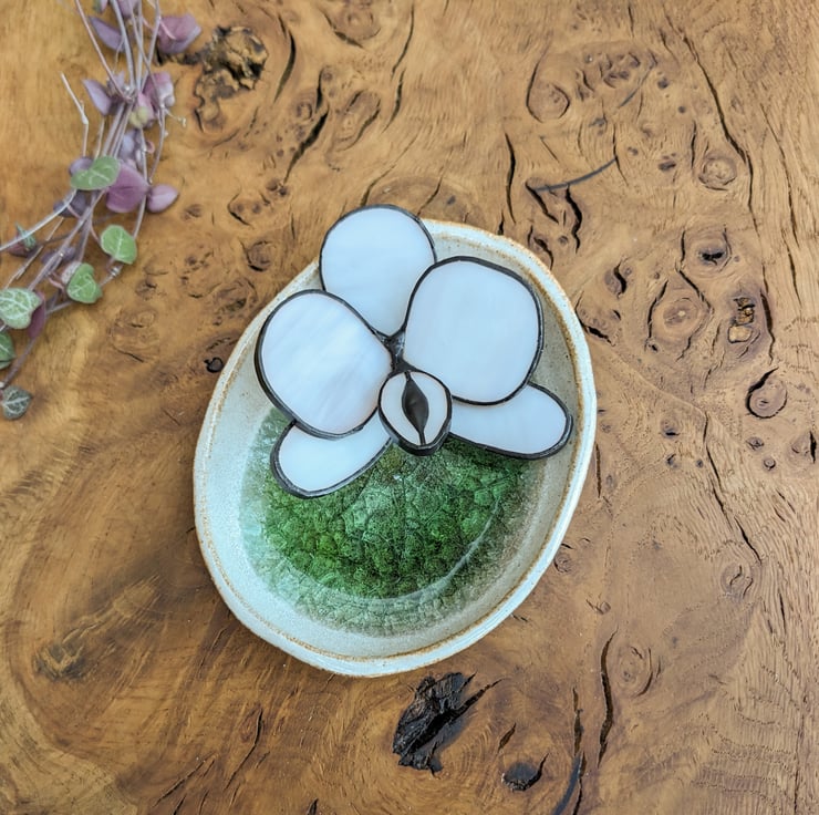 The resultant orchid is approximately 2.5 inches (7 cm) wide, although the pattern can be scaled up/scaled down on your printer. The orchid could then be added to a wire stake, attached to a 2D glass panel, hung as a suncatcher, made into a brooch or used as a ring dish or tealight holder... the possibilities are endless!