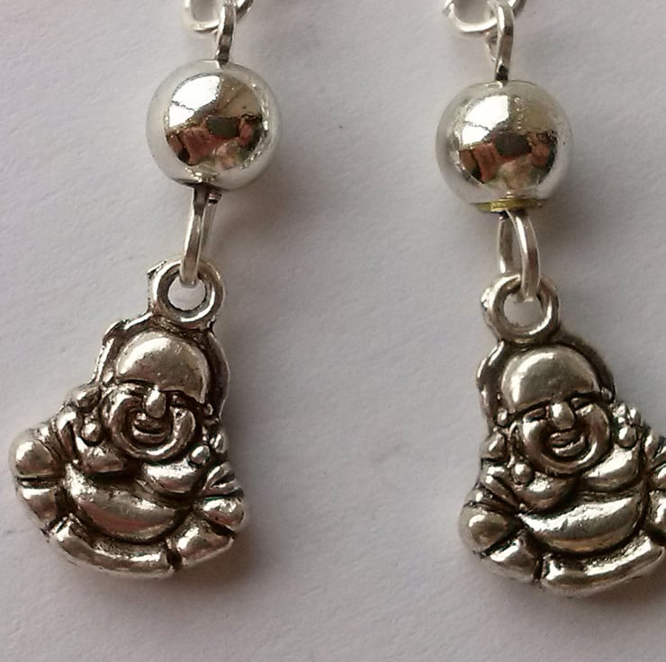 These sweet earrings have small Buddha charms hanging on silver plate hooks.