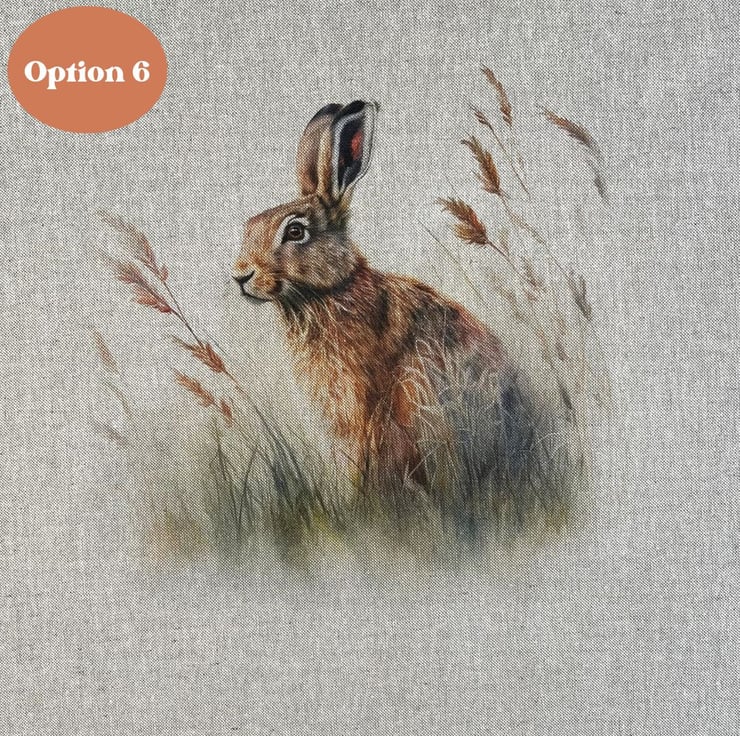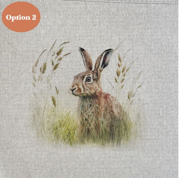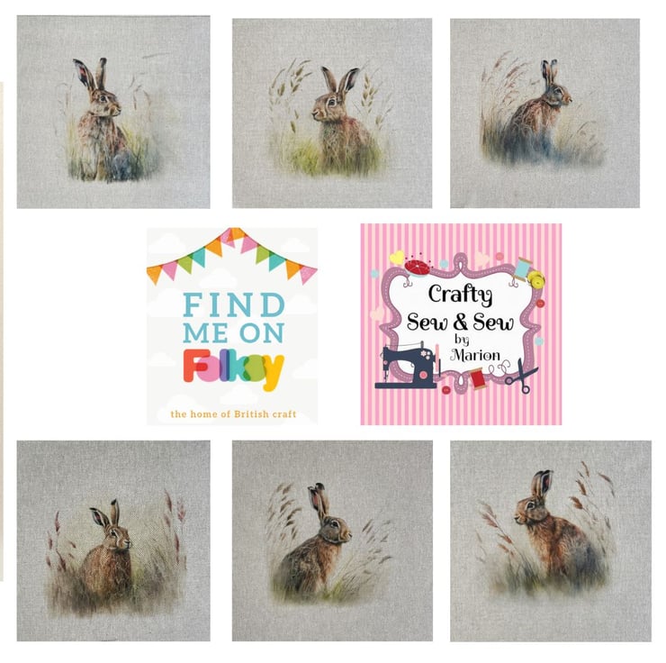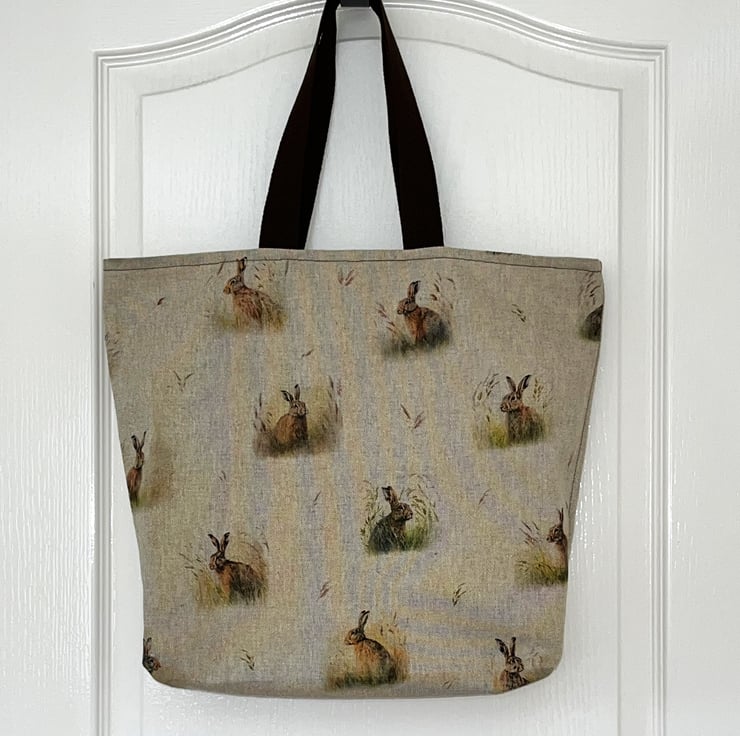 I have a selection of panels, each featuring a different illustration of a hare which I have made into soft sided tote style shopper bags. Simply select the image you want from the options box.