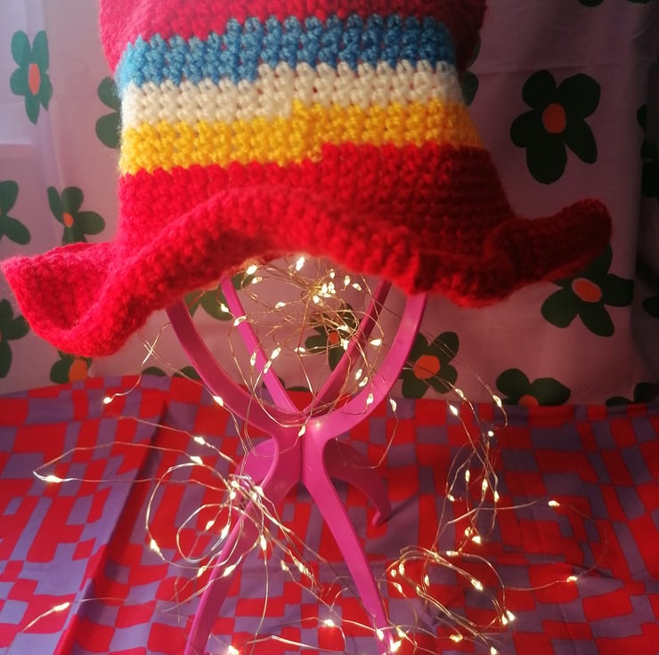 Crochet hats were made alongside Dawn's Curious Delights crochet bags to create a unique festival fashion bundle, so you can stand out amongst the most colourful and craziest of crowds.