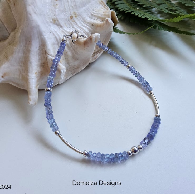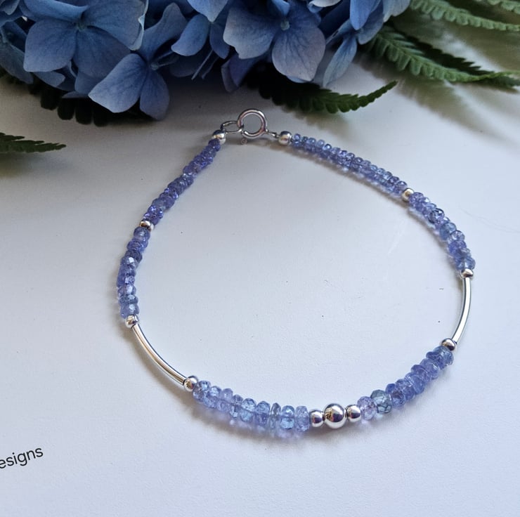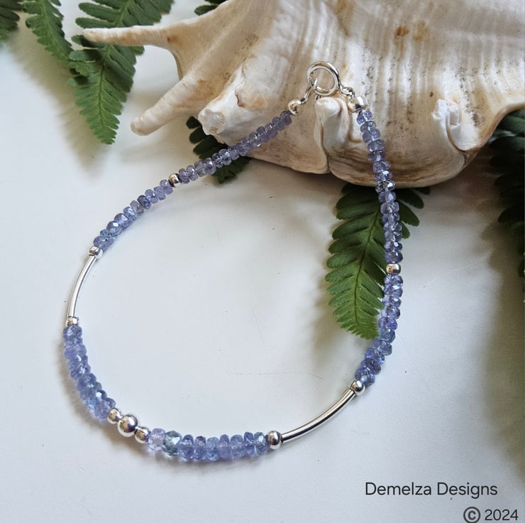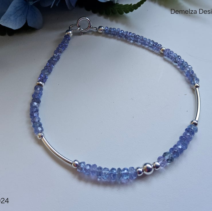 Dainty Tanzanite AA Grade Sterling Silver Noodle Style Bracelet