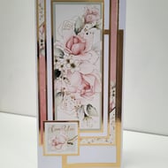 The card measures approx 14.5 x 14.5cm / 5.75 x 5.75in and is supplied with a plain white envelope.