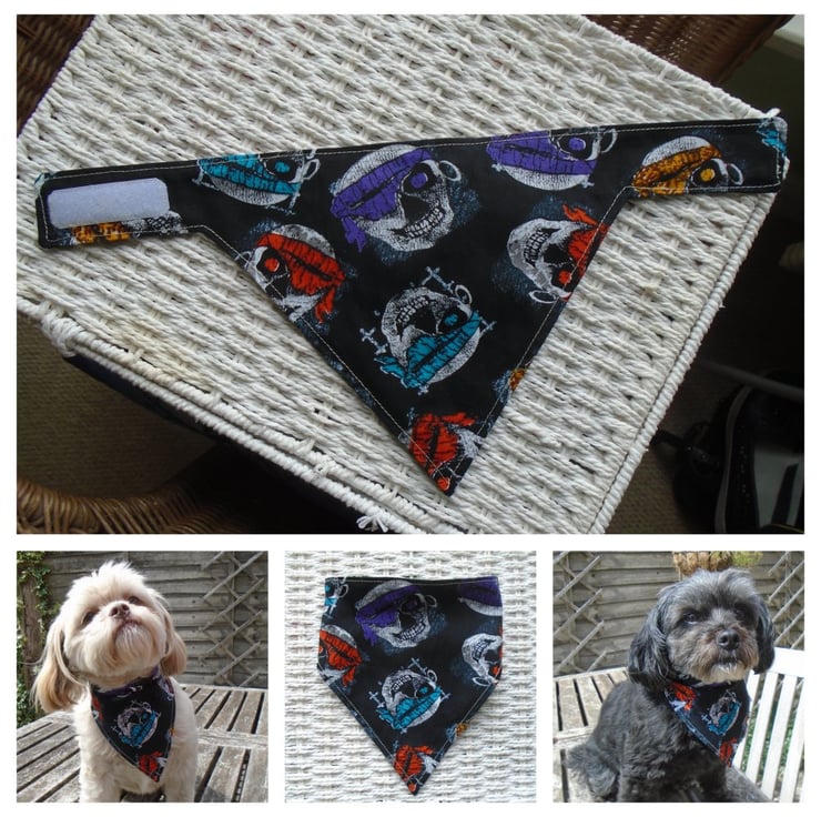 Dog bandana with velcro tie double sided 20 inches. Great for dog lovers 100% cotton and washable at low heat.
