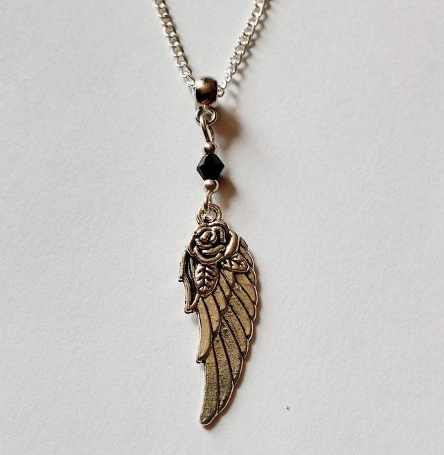 Black Crystal Rose Angel Wing Gothic Necklace