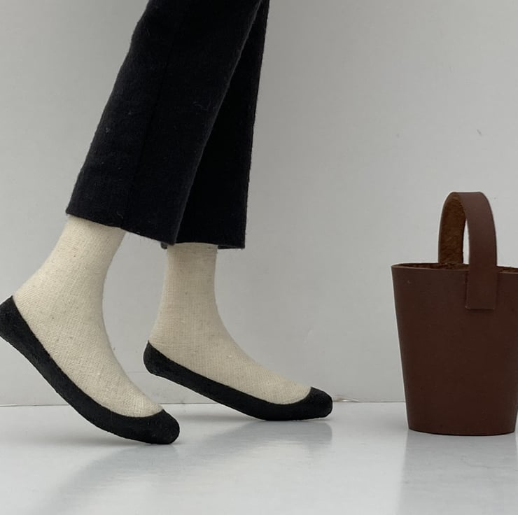 Her face, fingernails and shoes are hand painted with acrylic paint.